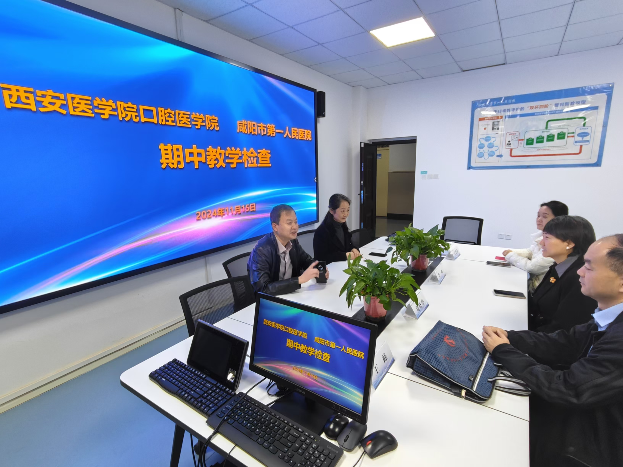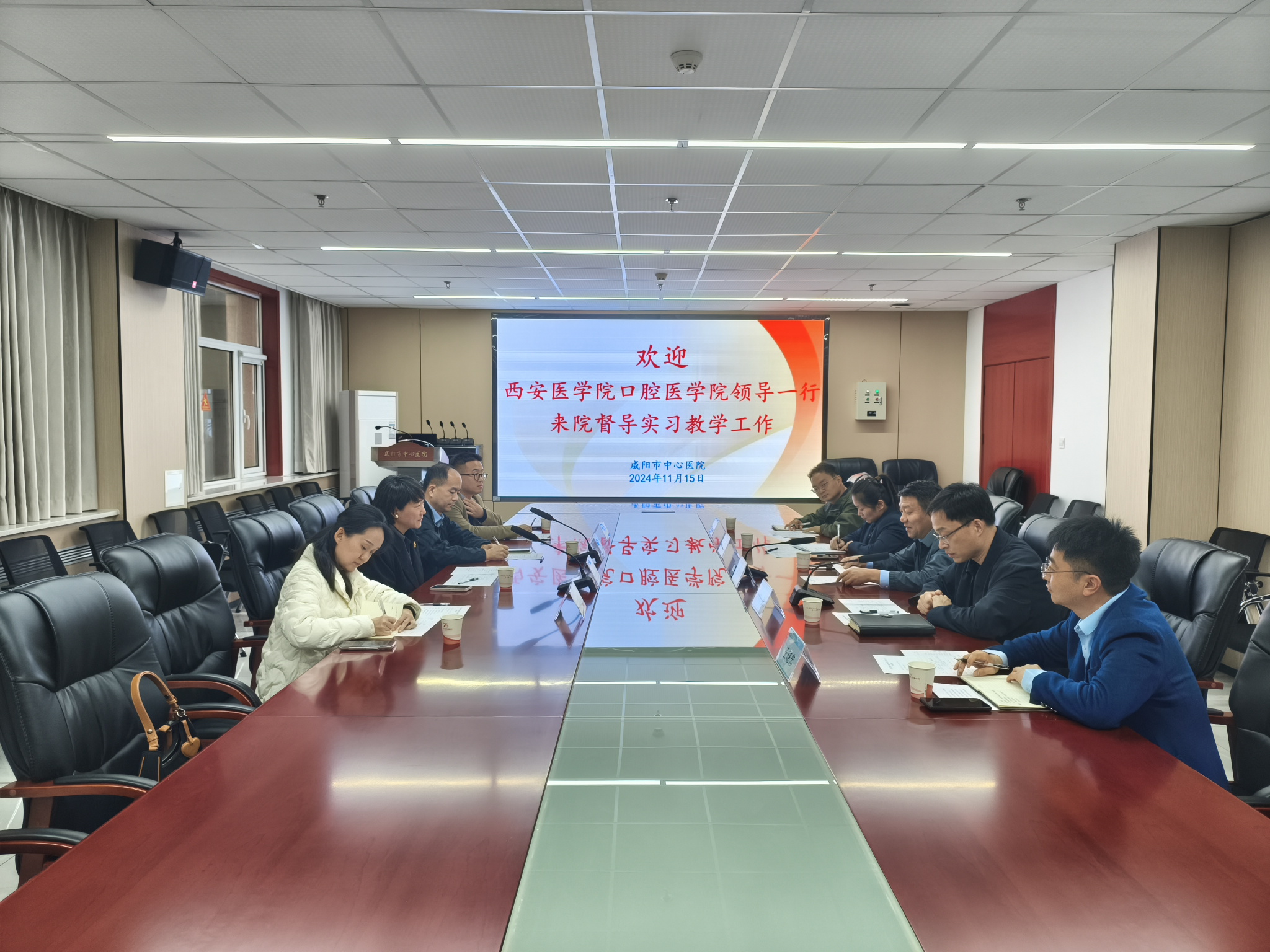 实习巡查小组先后来到咸阳市第一人民医院、延安大学咸阳医院及咸阳市中心医院。在各基地分别与医院负责领导、带教老师、实习生进行座谈,走访了口腔科、实习生宿舍和餐厅,检查了教学管理档案。