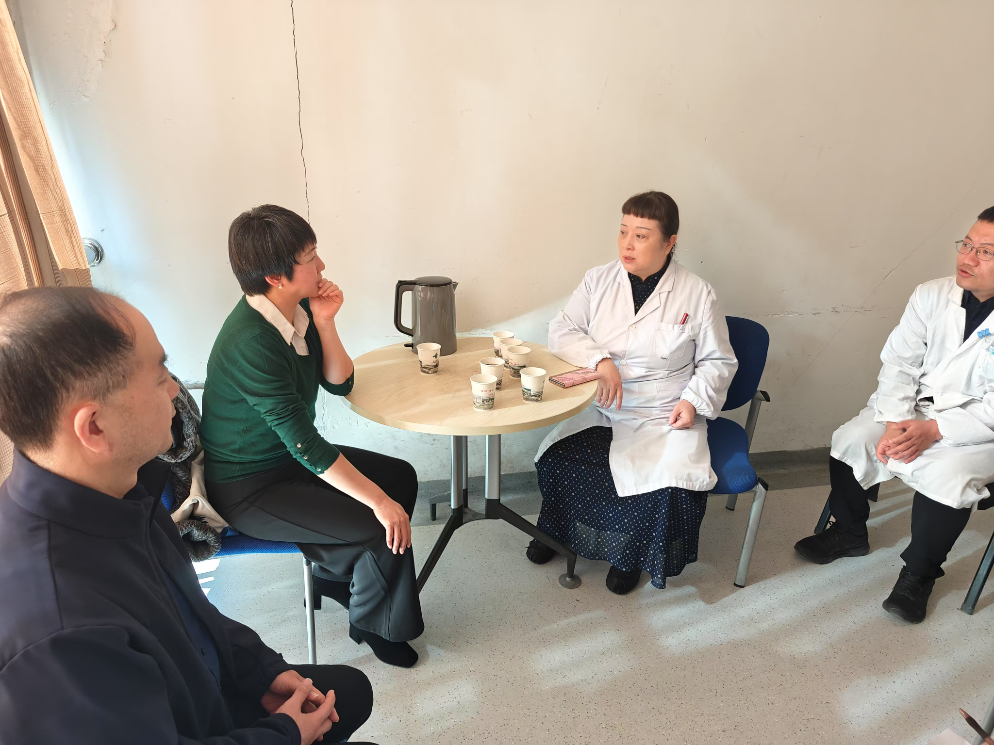 到达医院后,娄鸣首先与实习医院主管领导及口腔科室负责人进行了座谈。双方就实习生的表现、实践教学安排、临床带教等方面展开了深入交流。医院主管对taptap点点实习生的专业素养和工作态度给予了高度评价,同时也针对实习过程中存在的一些问题提出了宝贵的意见和建议。娄鸣对院方的积极合作表示感谢,她表示希望院方进一步优化实习科室轮转,有助于提升实习生口腔全科能力,同时对于实习生管理经验与院方展开交流。双方还就进一步加强合作、未来开展实习年会等方面达成了共识。
