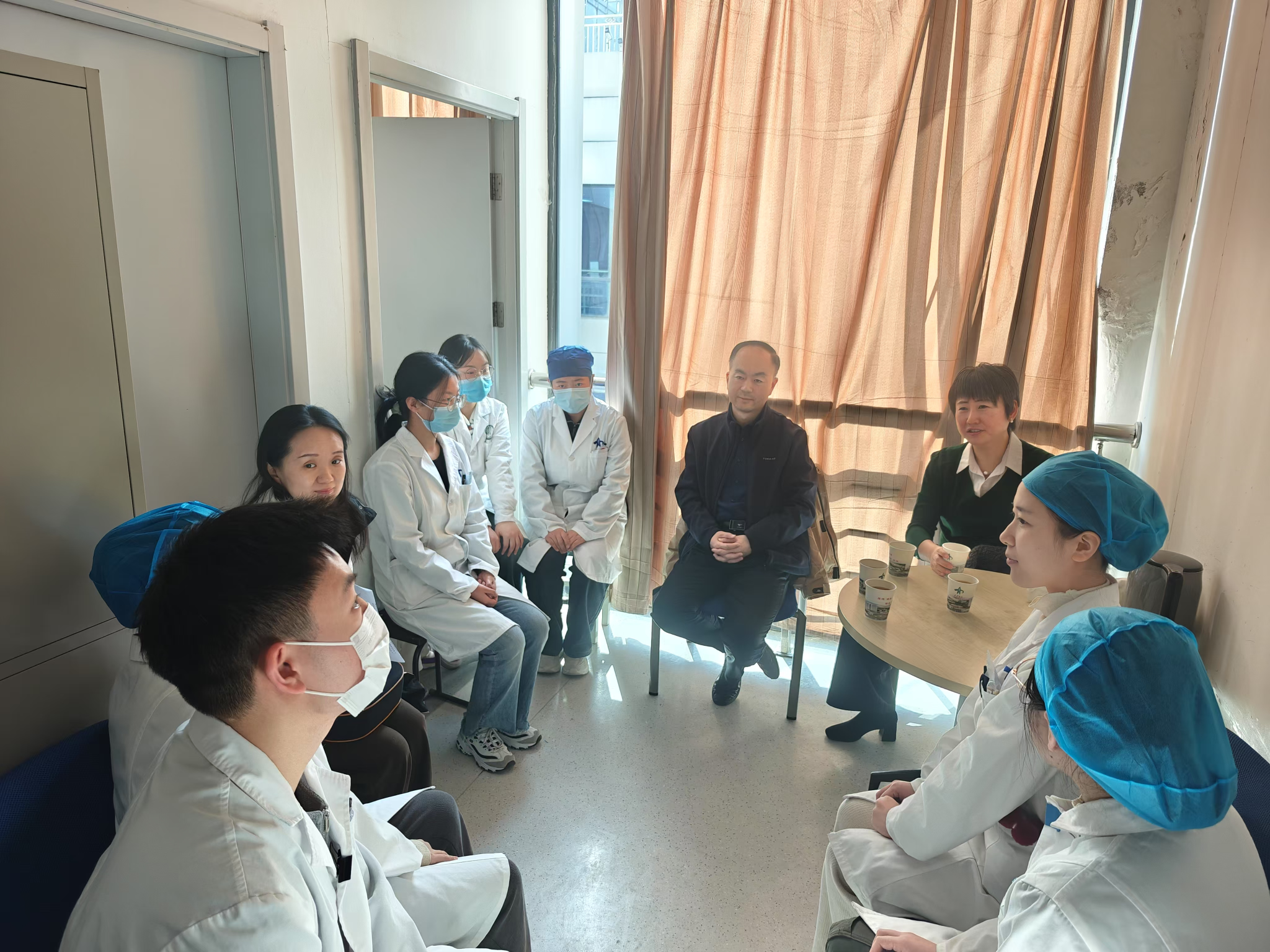 随后,娄鸣与全体实习生进行了面对面的座谈。在轻松愉快的氛围中,实习生们踊跃发言,分享了自己在实习期间的收获、体会以及遇到的困难和挑战。娄鸣认真倾听了每位同学的发言,并对同学们提出的问题进行了耐心细致的解答。他鼓励同学们珍惜实习机会,虚心向带教老师学习,将理论知识与临床实践紧密结合,不断提升自己的专业技能和综合素质。同时,也提醒同学们要严格遵守医院的各项规章制度,注意医疗安全和职业防护。