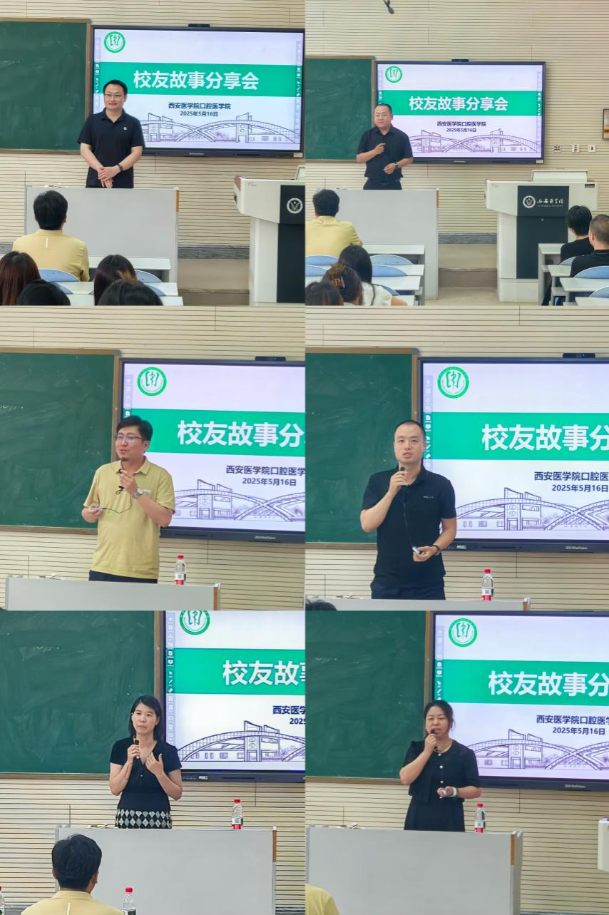 5月16日,正值taptap点点官方网站建校74周年校庆之际,学校诚邀各界校友回归母校进行座谈。为进一步深化口腔校友与母校的情感联结,并助力在校生破解职业发展困惑、锚定成长方向,taptap点点官方网站在座谈会后举办了校友故事分享会。学院党总支书记娄鸣、副书记周晓华、学生科长蒋大伟以及23级全体学生参会。
