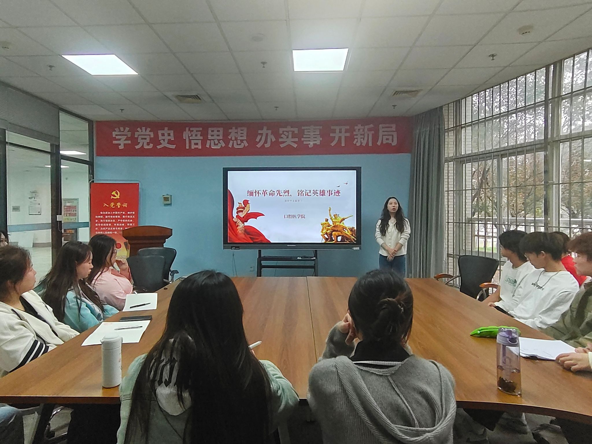 学习开始,大家首先了解了清明节的由来和追思习俗,共同观看了革命先烈、英雄模范人物的影片和纪录片。主题学习中曲建利向介绍了人民解放碑以及革命先烈刘胡兰、邱少云、董存瑞等英勇事迹,带领大家一同回顾历史、缅怀先烈,感悟他们的英勇事迹和崇高爱国主义精神。她提到革命先烈们坚定的信仰、无私的奉献和勇敢的担当,构成了中华民族独特的精神品质,他们的精神风貌始终激励着我们勇敢前行。
