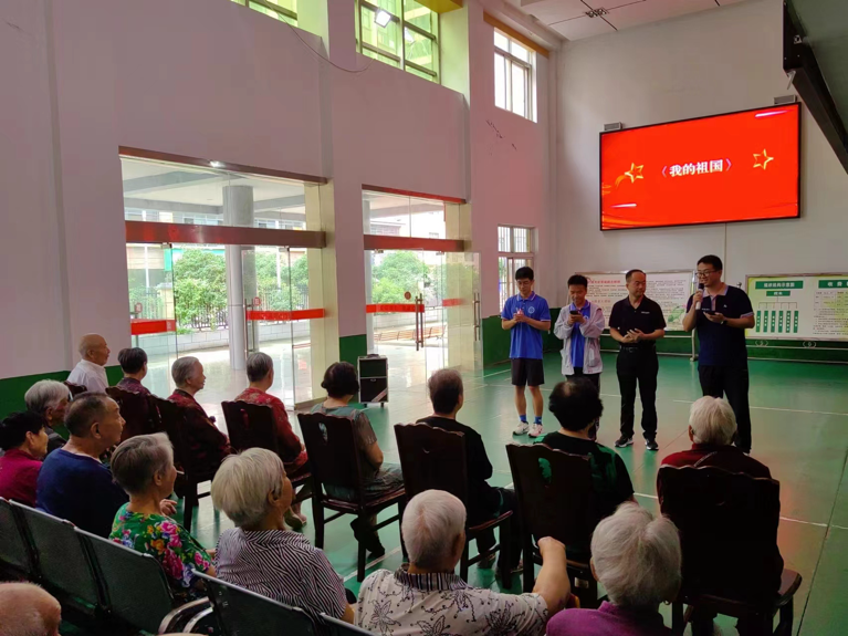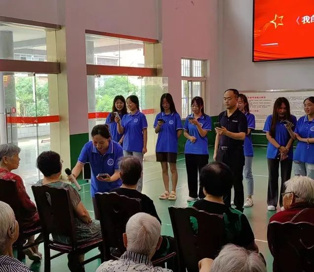 为帮助老人们缓解孤独,营造愉快欢乐的氛围,学生们合唱《团结就是力量》、《我的祖国》歌曲,熟悉的旋律和轻快的节奏让老人们回想起自己的青春岁月,大家露出微笑,跟着歌唱,气氛轻松愉悦,老人们纷纷拍手称赞,表示感谢。