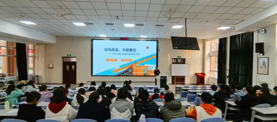 为进一步加强大学生的思想政治教育工作,引导口腔学子知史明理,激发同学们的爱国热情,12月11日下午,在未央校区教学楼阶梯教室(一),学院举办“五老”进课堂活动。活动邀请学校“五老”成员之一——校离退休工作处正处级组织员刘睿做《肩负使命,不敢懈怠》的主题讲座,2024级全体学生聆听讲座。