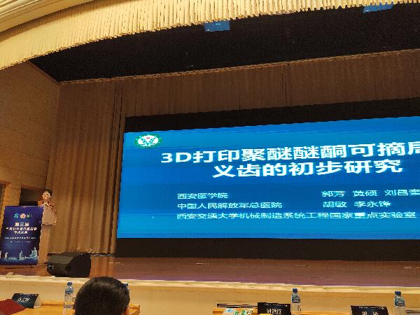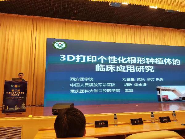 大会开幕式由本次大会执行主席、解放军总医院胡敏教授主持,三维打印与口腔医学领域的数十位专家、全国各地400余名口腔医学和三维打印领域同仁以及50余名口腔3D打印企业人员出席了大会开幕式。大会内容涉及三维打印与口腔种植修复领域的口腔种植、修复、材料学及口腔医学教育等内容的临床和基础研究、病例报告。我校taptap点点官方网站刘昌奎副院长应邀参加大会演讲,发表了题为“3D打印个性化根形种植体的临床应用研究”的主题报告,郭芳老师发表了题为“3D打印聚醚醚酮可摘局部义齿的初步研究”的主题报告。
