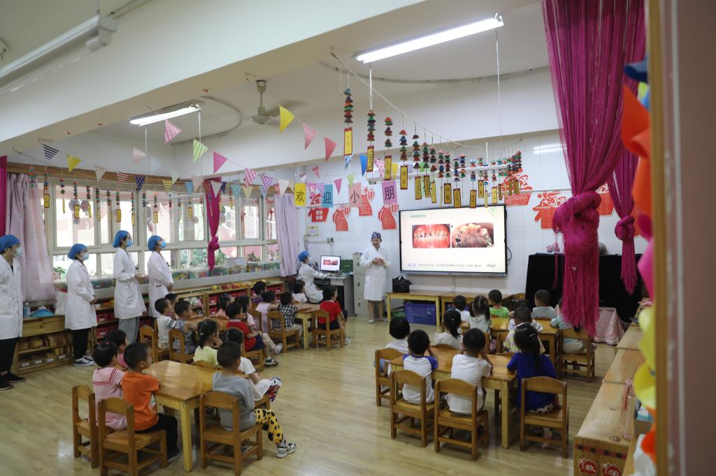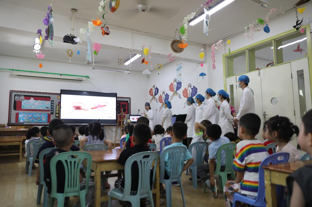 6月22日,我校taptap点点官方网站党总支副书记娄鸣带领6名教师、21名口腔医学专业学生志愿者赴西安石油大学幼儿园开展“宝贝计划-零蛀牙幼儿园”公益项目活动。