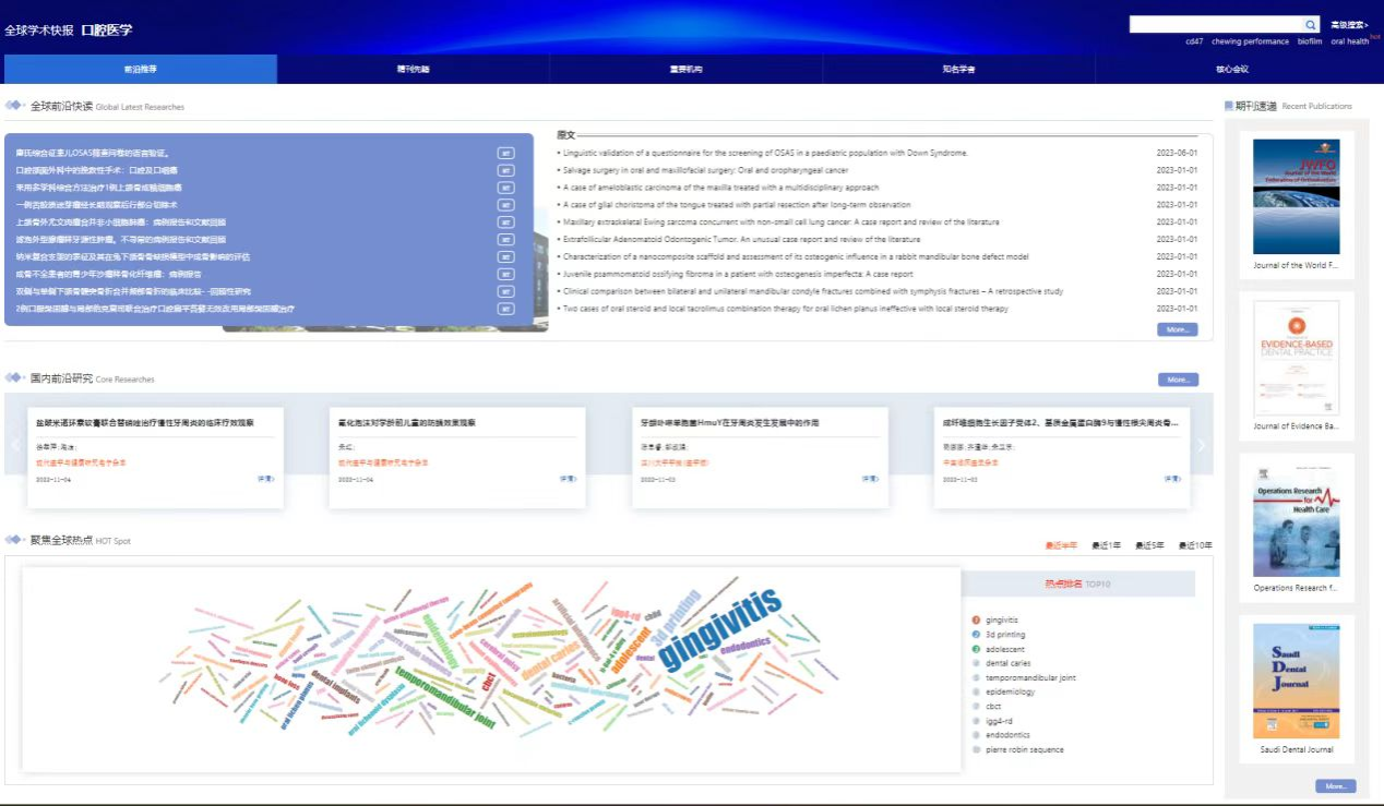 为了加强校级重点扶持学科“口腔临床医学”的建设工作,taptap点点官方网站新上线了《全球学术快报(学科版)——口腔医学总库》。