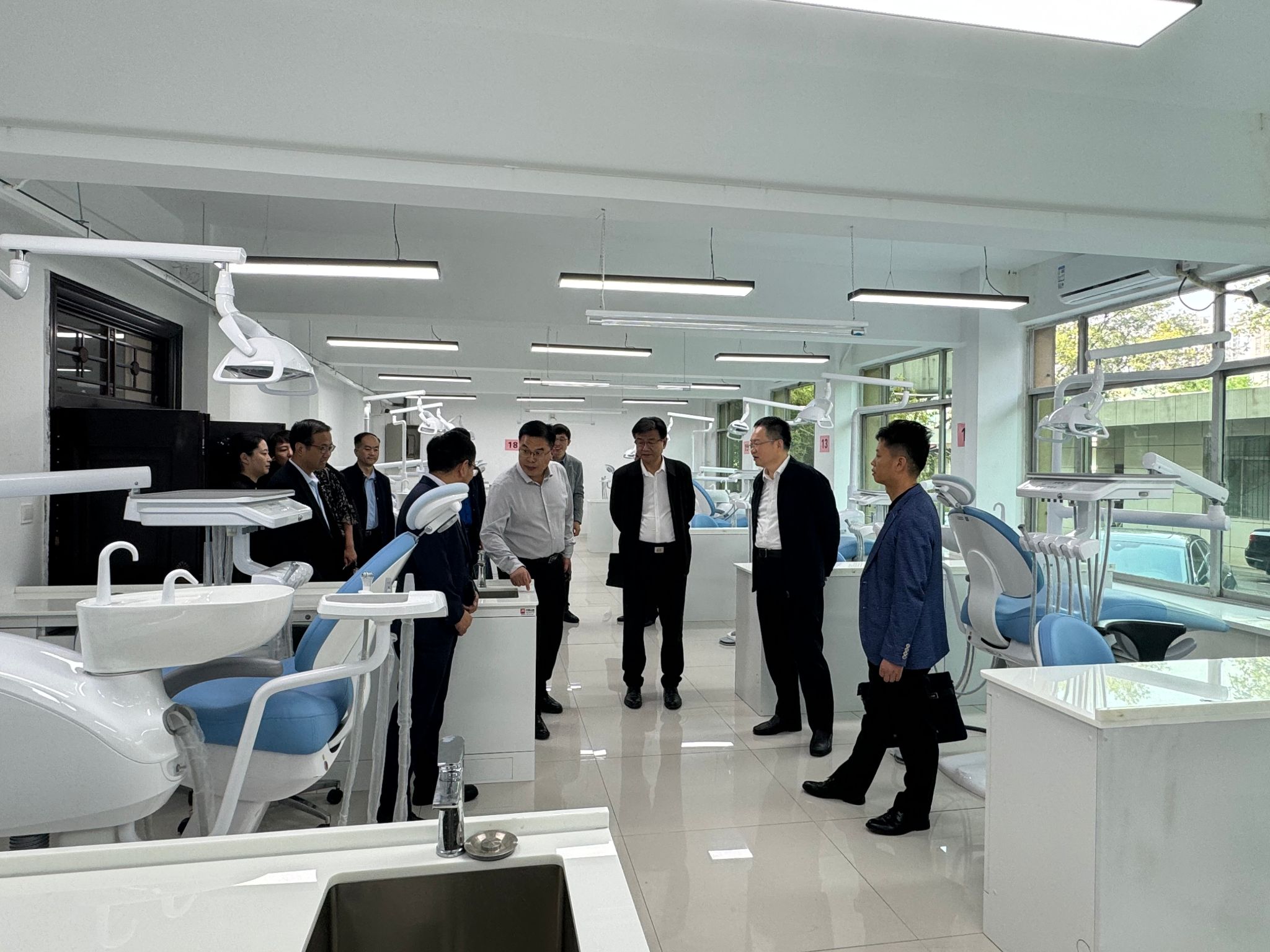 刘岭书记一行实地考察了国家医师资格(口腔类别)实践技能考试基地部分考站、口腔医学实验中心、牙颌面组织再生与修复研究中心和科研实验室,询问了解教学和科研工作开展情况。