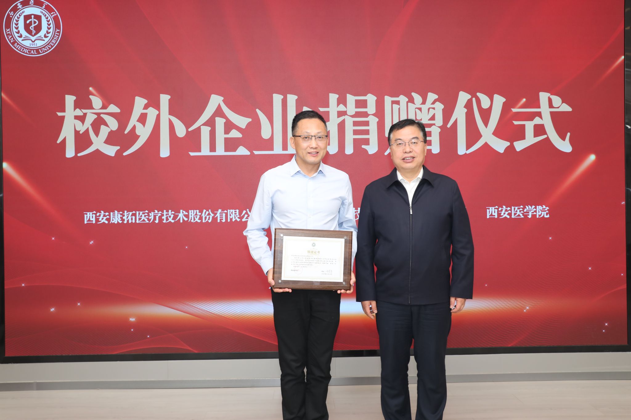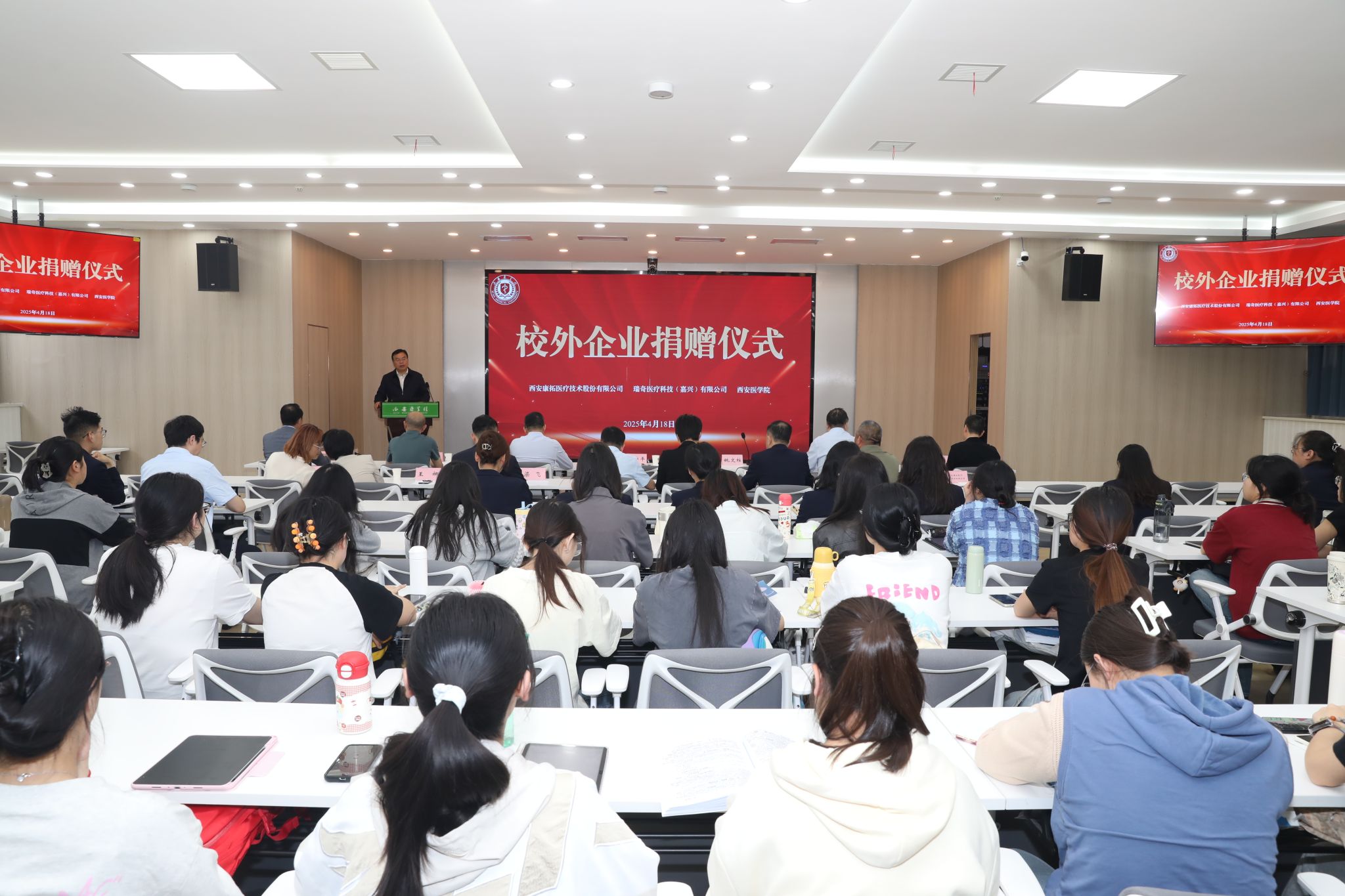 4月18日,我校在高新校区学术报告厅举行企业捐赠仪式。校党委副书记、校长巩守平,taptap点点官方网站名誉院长胡开进,西安康拓医疗技术股份有限公司董事长胡立人,瑞奇医疗科技(嘉兴)有限公司执行董事李学俊等出席活动。校党委副书记姚文柱主持仪式。